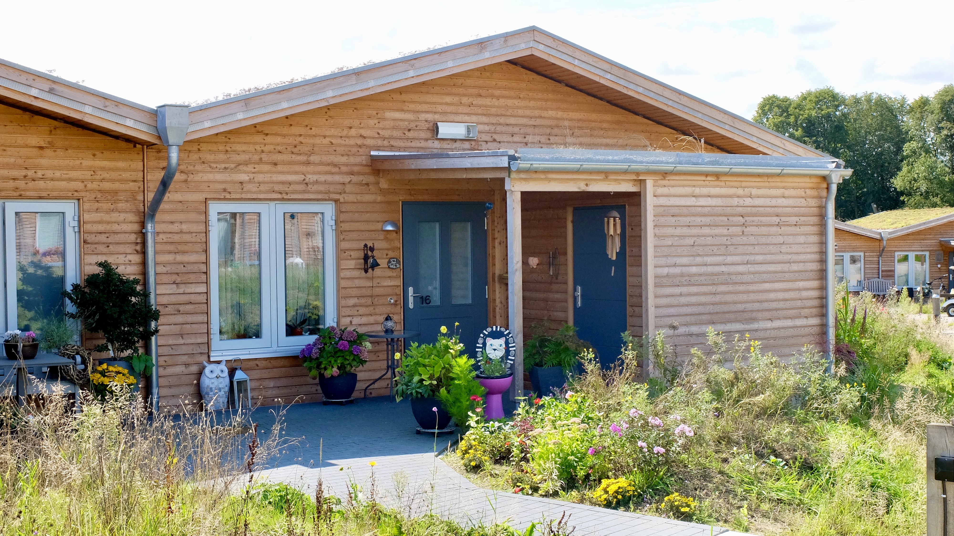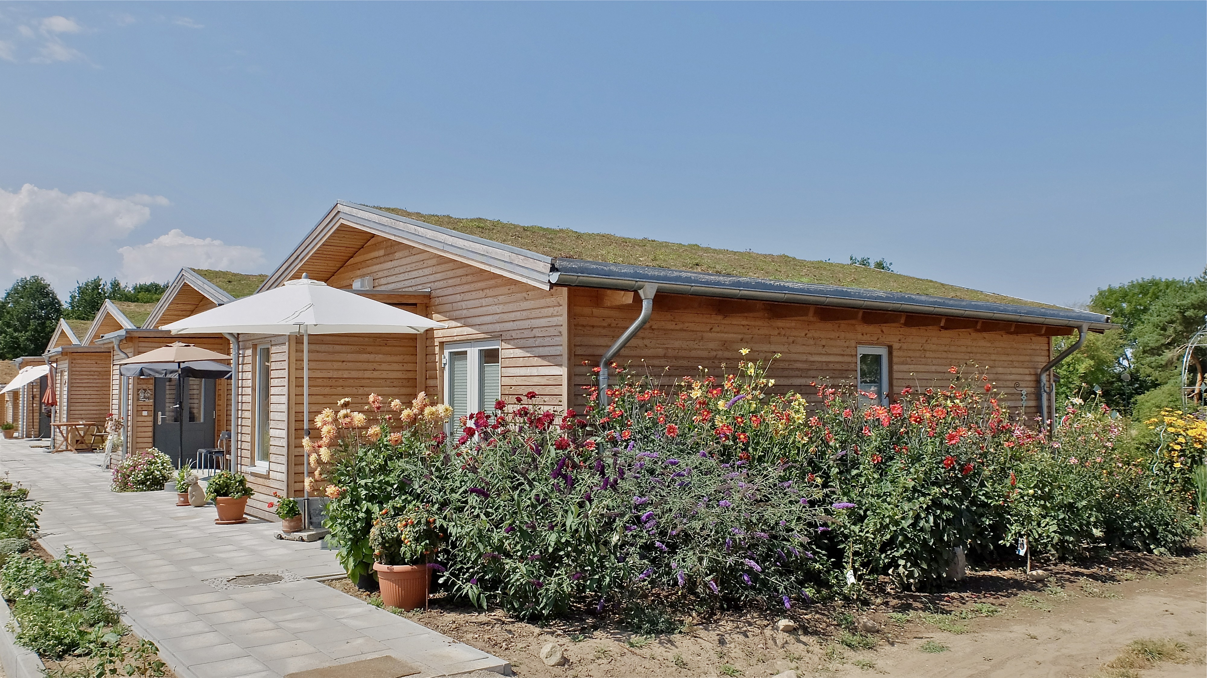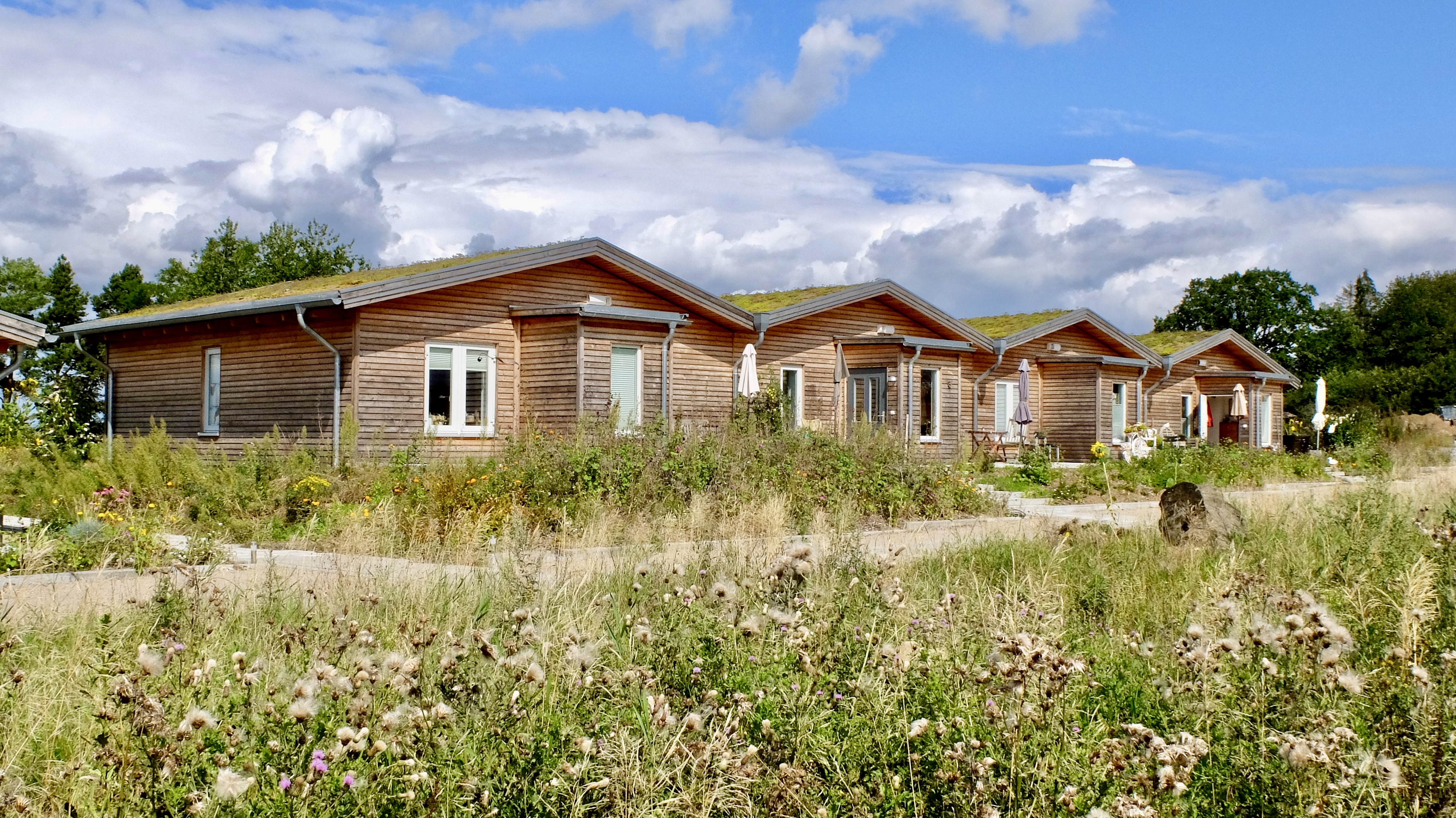 - Haustypen: Reihenhäuser, Doppelhäuser, Bungalows und Gemeinschaftshaus mit drei Wohneinheiten